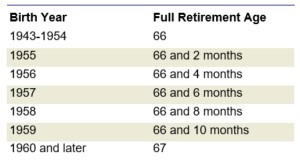 Note: If you were born on January 1 of any year, refer to the previous year to determine your full retirement age.